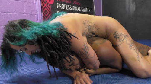 We have to remember that these female warriors are proud and egotistical, they hate to lose and can't fathom being fucked by another woman who has vanquished them in a fair fight. They fear that dreaded moment where their gloating, arrogant rival poses over them in victory and walks off the mat in search of her cock. Embarrassed, they lie on the mat covered in sweat wanting to hate the sex and the woman bringing her to the brink of sexual ecstasy before making her cum, oozing girl goo all over the Academy mats and the hard dick. Re-matches add to the agony of defeat as you have intimate knowledge of the others move set and her body. You want to expand upon your successes and limit your mistakes so that claiming your prize is all the more satisfying. Ebony beauty Bunny is big, strong and angry about the outcome of her last match with Andre (SOAPE 051). She feels like she let her off the hook and couldn't close out and secure the win. Andre can't compete with the power and size of her foe and relies on her technical mastery to push Bunny to her limits. This one's fast paced and exciting, a frustrated Bunny falls behind early and battles back like a true fighter hoping to humiliate a determined, physically inferior Andre. The winner relishes her power and triumph as the sexually used, dejected loser pouts on the side of the mats actually wanting to be fucked some more.
