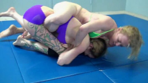 Wow! Another stellar match-up at Academy! This time we've got Darling pitted against another Academy favorite, Rain de Grey. It's going to be a battle of big breasts (and skimpy bikinis) as both these girls are packing along with er bos. Both Darling and Rain have plenty of wrestling experience both at Academy and elsewhere - coupled with a ged determination to fight and fuck they waste no time getting down to it as Rain flings herself at Darling during the warm-up. It's a real contrast - Darling gives up a lot in height to Rain but has the edge in training and fitness. She quickly asserts herself after Rain's initial move and soon is bending Rain backwards for her insolence.