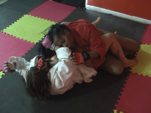 She continues the humiliation sexually as she roughly fucks the loser causing her to cry out. The fighting continues as she fucks her and they trade blows. The loser is even too tired to properly ride a dick, good thing she reaches orgasm and climaxes due to the harsh, intense fucking she got.